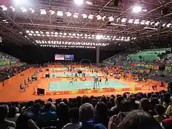 The badminton tournaments at the 2016 Summer Olympics in Rio de Janeiro took place from 11 to 20 August at the fourth pavilion of Riocentro. A total of 172 athletes competed in five events: men's singles, men's doubles, women's singles, women's doubles, and mixed doubles.[1]