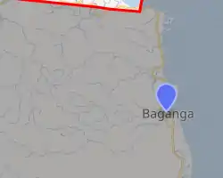 Baganga (/bəˈɡɑːŋɡə/), officially the Municipality of Baganga, is a 1st class municipality in the province of Davao Oriental, Philippines. According to the 2020 census, it has a population of 58,714 people, making it the third largest town in province.