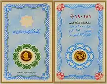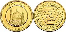 Bahār-e Āzādī (Persian: بهار آزادی, lit. "[The] Spring of Freedom"), also known as "Imami", is an Iranian bullion gold coin minted by the Security Printing and Minting Organization of the Central Bank of the Islamic Republic of Iran (CBI), replacing the Pahlavi Coin after the Iranian Revolution. On the first edition of the coin Imam Reza Shrine and Calligraphy of the word علی ("Ali") was seen on both sides of the coin. Two years after the death of Ruhollah Khomeini in 1991, at first the left portrait of him was minted on the obverse of the coins which replaced by right three face instead of the calligraphy.[1]