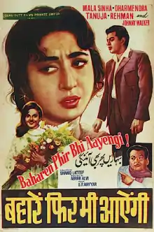 Baharen Phir Bhi Aayengi (transl. Spring will still come) is a 1966 Hindi-language romantic-tragedy film produced by Guru Dutt and directed by Shaheed Latif. It stars Dharmendra, Mala Sinha, Tanuja, Deven Verma, Rehman, Johnny Walker in lead roles. The film is still remembered for its music by O. P. Nayyar and lyrics by Sheven Rizvi, Aziz Kashmiri and for its expressionistic cinematography by K.G. Prabhakar.[1]