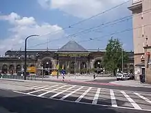 Dresden-Neustadt station (German: Bahnhof Dresden-Neustadt) is the second largest railway station in the German city of Dresden after Dresden Hauptbahnhof and is also a stop for long-distance traffic. It is the junction for rail traffic on the northern side of the Elbe. It was built in 1901, replacing the Leipziger Bahnhof (Leipzig line station), which was opened in Leipziger Vorstadt in 1839, and the Schlesischen Bahnhof (Silesian line station), which was opened in 1847. The station building in the district of Innere Neustadt (inner new city) was built in the monumental style that was typical of the time, underlining its importance as a stop for long-distance services.