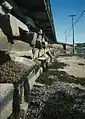 A sidewalk was added in 1951 and guard rails in 1961. The Bailey Island Bridge was listed on the National Register of Historic Places in 1975; on July 19, 1984, it was recognized as a National Historic Civil Engineering Landmark. The Bailey Island Bridge is reported to be the only granite cribstone bridge in the world.[2][4]