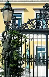 While, generally, the gaioleiro-style reinforcement of the buildings is not common, many of the Pombaline buildings were redesigned in keeping with the design aesthetic of the time.[1] The construction of palacettes in this Romanticism style, resulted from a collage of the French aesthetic influences, identified primarily in the north and east of Bairro Alto, and especially in the area of São Pedro de Alcântara, where the Palacete Laranjeiras is the best example.[1] This was a period that emphasized the façade of the buildings, with large verandas. They present a strong characteristic of the façade, with protruding balconies, fine gratings, frame spans over worked masonry and the application of curved lines, especially in the design of courtyards and windows along street corners.[1] At the same time, some buildings were constructed to house workers, organized into villages or in courtyards, such as the Pátio do Tijolo (literally, the Yard of Bricks). These were multi-family buildings, usually two to three storeys in height, with a high occupancy and little space.[1]