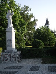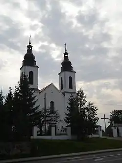 During World War II nearly 90% of all Bakałarzewo buildings were destroyed by 1945. During the German occupation, the Germans arrested the local parish priest Antoni Romuald Jałbrzykowski in late 1939, then imprisoned him in Stary Folwark and Suwałki until January 1940 and murdered him in the forest near the village of Krzywe nearby.[2] Young Polish priest Kazimierz Hamerszmit was arrested in April 1940, and then imprisoned in the Soldau, Sachsenhausen and Dachau concentration camps, however, he survived and eventually returned to Poland.[3] Bakałarzewo was an important center of the Home Army, and on May 25, 1944, German soldiers killed 12 Home Army members (see Nazi crimes against the Polish nation).
