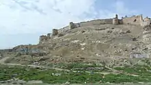Bala Hissar (lit. 'High Fort') is an ancient fortress located in the south of the old city of Kabul, Afghanistan. The estimated date of construction is around the 5th century AD.[1] Bala Hissar sits to the south of the modern city centre at the tail end of the Kuh-e-Sherdarwaza Mountain. The Walls of Kabul, which are 20 feet (6.1 m) high and 12 feet (3.7 m) thick, start at the fortress and follow the mountain ridge in a sweeping curve down to the river. It sports a set of gates for access to the fortress. The Kōh-e Shēr Darwāzah (lion door) mountain is behind the fort.