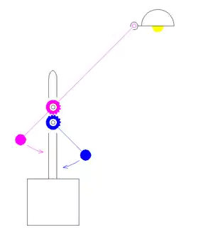 For the physics and theory behind balanced-arm lamps, see Classical mechanics, linkage and torque. There are different methods to balance the lamp-cap of a balanced-arm lamp. Some lamps have two coil springs working in parallel on both sides of the pivoting arm. (A set of springs functions in the same way as a single spring.) Others are balanced with counterweights (a method frequently used in drawing-boards). Friction between parts of the lamp arm can also be used to maintain balance. There are a number of mechanical solutions (coupling, hydraulics and pneumatic arms) which have occasionally been used for balanced-arm lamps.