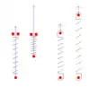 There are many variations of construction with springs. Springs can be located on the mechanical equivalent of the forearm or the upper arm, or both, as well as nearer the base. Some lamps use tension springs, and others use compression springs. The adjacent image shows (left to right) a compression spring at rest, then under load, followed by a tension spring at rest, and then under load. Springs have a limited lifting capacity and extension length. Some springs can resonate, producing low-level unwanted noise.