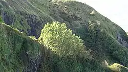 The headland above the old enclosure is the location of a rare tree for this area of Scotland, the aspen (Populus tremula). A clone of the aspen is grows along the summit ridge. Part of the bay lies in a Site of Special Scientific Interest (SSSI).