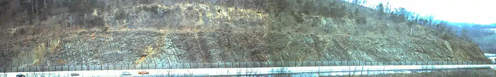 The Bald Eagle is defined as a gray to olive-gray and grayish-red, fine to coarse-grained crossbedded sandstone or greywacke. A conglomeratic member, called the Lost Run Member, exists in some locations.[3]