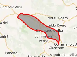Baldissero d'Alba is a comune (municipality) in the Province of Cuneo in the Italian region Piedmont, located about 35 kilometres (22 mi) southeast of Turin and about 50 kilometres (31 mi) northeast of Cuneo. As of 31 December 2004, it had a population of 1,083 and an area of 15.0 square kilometres (5.8 sq mi).[3]