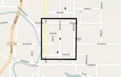 The Baldwin-Wallace College South Campus Historic District includes a four-block area that is centered on Seminary Street. The south campus of Baldwin-Wallace College incorporates the former German Wallace College campus, which was centered on the mid-19th century site of the Lyceum Village Square. Both the college and the square are listed in the National Register of Historic Places as the Lyceum Village Square and German Wallace College Historic District in 1975. The Baldwin-Wallace College South Campus Historic District includes a total of 14 buildings and one structure.[1][3][4]