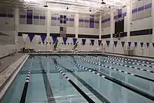BHS Natatorium, featuring a 6-lane pool with a 12ft diving well, dual diving boards, timing system, and upper viewing deck.