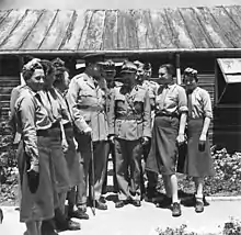![]() Major-General Hutchison (centre left) with General Zamorski and members of the Polish Women's Auxiliary Service in 1942. | |