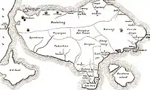 In 1478, Ranawijaya's army under general Udara breached Trowulan defences and killed Kertabumi in his palace,[8][9] Demak sent reinforcements under Sunan Ngudung, who later died in battle and was replaced by Sunan Kudus, but they came too late to save Kertabumi although they managed to repel the Ranawijaya's army. This event is mentioned in Jiwu and Petak inscription, where Ranawijaya claimed that he already defeated Kertabhumi and reunited Majapahit as one Kingdom.[10] Ranawijaya ruled from 1474 to 1498 with the formal name Girindrawardhana, with Udara as his vice-regent. This event led to the war between Sultanate of Demak and Daha, since Demak ruler, Raden Patah, were the descendant of Kertabhumi.