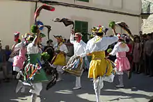 The ball dels cossiers has been found on Majorca since the 14th century, when it was brought to the island from Catalonia following the Aragonian conquest of the island under King Jaime I.[1] The earliest recorded evidence for the dance has been found in a 1544 manuscript in Sóller.[2] However, some scholars argue that the dance has its roots in pagan nature spirit worshiping rituals native to the island, and that the modern dance is a synthesais of these ancient rituals and relatively modern Catalan traditions.[1]