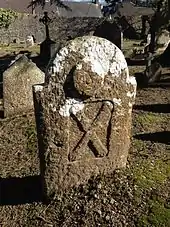Temple Hill, Churchyard Lane, and Ballintemple itself derive their names from an ecclesiastical and burial site at the top of Temple Hill.[2][3] While some historical texts suggest that this graveyard was sited at an early medieval church of the Knights Templar,[4] this is not supported by other texts,[5] and modern historians assert that this association is incorrect.[6] Whatever the case, while the graveyard remains, no archaeological evidence of an adjoining church has been subject to modern survey.[2] The graveyard itself has been subject to survey,[7] and while it may have been used in the early medieval period, the earliest recorded burial event was that of the entrails of Henry FitzRoy, 1st Duke of Grafton who was killed in the 1690 Siege of Cork and whose intestines were removed and buried here to preserve the body prior to transport back to England.[8] The earliest remaining extant burial markers (with discernable dates) are dated to the early 18th Century.[9] The antiquary and folklorist Thomas Crofton Croker surveyed the graveyard in the early 19th century. Croker records a folksong relating to the graveyard[10] as well as documenting a marker for an 18th-century burial of a Lieutenant Henry Richard Temple who died with his young wife during a journey from the Caribbean (via Ireland) to England.[11] During one such survey in the early 1800s, Croker was chased by locals who mistook his survey for grave robbery.[12] The graveyard is accessible but closed to new burials (save to a few families with existing burial rights).