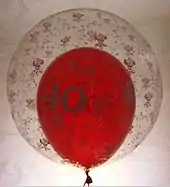 The image illustrates the principle of a balloon within a balloon. The outer balloon represents the airship's outer envelope or gasbag, while the red inner balloon represents the ballonet. In an airship the ballonet would be much smaller relative to the size of the gasbag; for example, in the French airship Lebaudy Patrie the volume of the ballonet was approximately one-fifth that of the envelope.