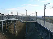 The station consists of two outward-facing side platforms serving two tracks. The two platforms are linked by walkways.