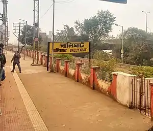 Bally Ghat railway station is a station of Eastern Railway in Howrah. It is 15 km away from Sealdah and 7 km from Dankuni Junction on the Sealdah–Dankuni line of Eastern Railway. It is part of the Kolkata Suburban Railway system. Dankuni and Bardhaman local trains connect this place to Sealdah Station and other stations of the Sealdah main line. It is an important railway station between Dum Dum and Dankuni.