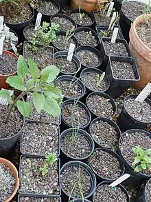 | Some babies from last year including Keckiella antirrhinoides, Balsamorrhiza incana and Zephyranthes atamasco. The bigger plant is Physochlaina orientalis. | |