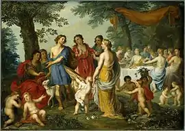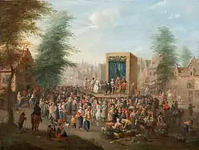 The Hermitage Museum has two genre paintings by Beschey which represent the five senses, a subject popular in Flemish art.[10] Christie’s sold another pair of genre scenes at its 30 March 2015 sale in Paris (lot 15) representing respectively a fishmarket and a Commedia dell'Arte scene.[11]