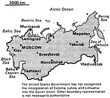 This map from the 1990 CIA World Factbook notes that the United States did not recognise the Soviet occupation of the Baltic states