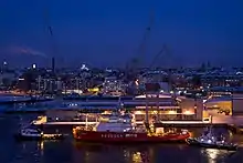 A true multipurpose vessel, Baltika is designed for icebreaking operations in harbours and adjacent waters. In addition, she can be utilized for towing of vessels and floating facilities in an emergency, extinguish external fires and perform various salvage and rescue operations. In case of oil spill, the vertical side of the asymmetric hull can be used as a large sweeping arm that guides oil floating on the surface to a built-in skimmer as the vessel moves obliquely through the oil slick.[2]