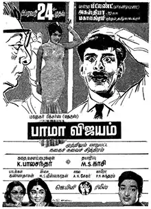 Bama Vijayam (transl. Bama's Visit) is a 1967 Indian Tamil-language comedy film directed by K. Balachander. The film features an ensemble cast including Sowcar Janaki, Rajasree, Kanchana, Jayanthi, Sachu, R. Muthuraman, Nagesh, Major Sundarrajan, Srikanth and T. S. Balaiah. It revolves around a man's three daughters-in-law who go to absurd lengths to impress an actress who becomes their neighbour.