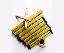This technique works in a very similar way to stone massage. Hands are used to work over the muscles and the cane is used to focus on knots. As the cane is used instead of the hand, various techniques and modalities can incorporate the use of bamboo canes. This can have the benefit of less stress to the practitioner's hands and arms.[1]