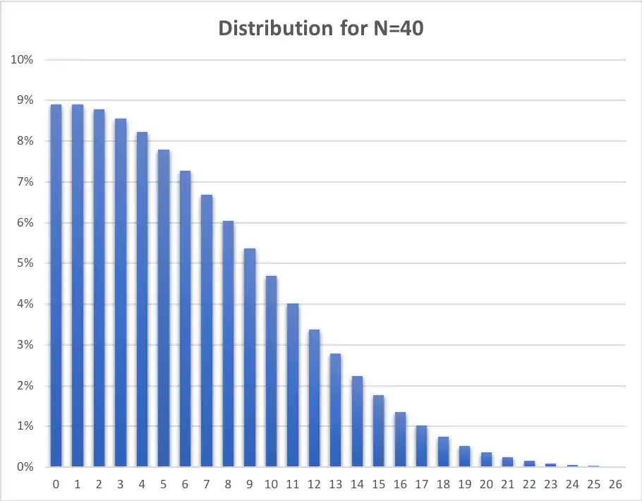 The expectation of the distribution is approximately . (This is shown using Stirling's approximation.[2]) So starting with boxes with matches, the expected number of matches in the second box is .