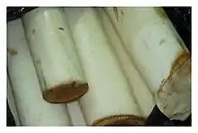 Banana pith or banana stem, is a vegetable harvested from the starchy inner core of banana pseudostems. It is used similarly to heart of palms in the cuisines of the Philippines, Malaysia, Indochina, Sri Lanka, and southern India.[1][2][3]