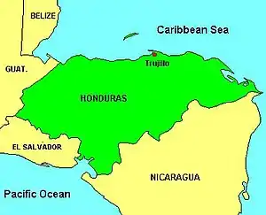 After the first concessions in 1912, US concerns achieved more or less complete control of the productive alluvial plains of Honduras' Atlantic coast. The area around Puerto Cortés was dominated by the Cuyamel Fruit Company, the La Ceiba region by Standard Fruit, and Tela and Trujillo were controlled by United Fruit's subsidiaries, the Tela Railroad Company and the Trujillo Railroad Company.[12] By 1929, the United Fruit Company operated in over 650,000 acres (2,600 km2) of the country and controlled the major ports.[13]