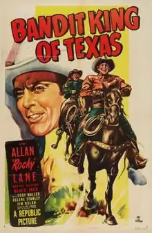 Bandit King of Texas is a 1949 American Western film directed by Fred C. Brannon and written by Olive Cooper. The film stars Allan Lane, Eddy Waller, Helene Stanley, James Nolan, Harry Lauter and Robert Bice. The film was released on August 29, 1949, by Republic Pictures.[1][2][3]
