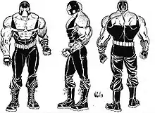 He is also highly devious and a superb strategist and tactician.[7] In prison, Bane also invented his own form of calisthenics, meditation, and a fighting style that he uses against other well-known martial arts fighters within the DC Universe. Bane creator Chuck Dixon's early tales portray Bane as a very calm, centered warrior akin to Bruce Lee; in as much that he draws strength through calm meditation and the spiritual energy of the "very rock of Peña Dura". Dixon imbued Bane with an almost supernatural quality when he explained that Bane triumphed in all of his prison fights by employing these abilities, while his opponents had only rage and greed to propel them. Multiple scenes in "Vengeance of Bane" explore this aspect when it explains that Bane's mastery of meditation techniques "made time and space playthings to him." A subsequent scene that reinforces this ability comes when Bird first comes to Bane for help because he heard from other inmates that Bane has "magic... the kind that allows him to travel beyond the prison walls."[16] Usage of Venom enhances his physical abilities, including his strength and healing process, to superhuman levels.[8][61][62] In most incarnations of the character, Bane requires a specialized tank to help control the amount of Venom which he injects into his body.