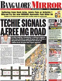 Bangalore Mirror is a daily English-language newspaper published in Bangalore, India. It is a deputed newspaper and is the second-largest circulating English newspaper in the city.