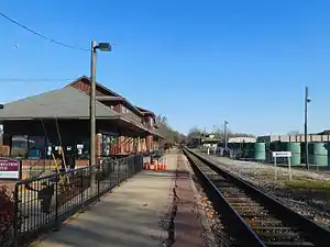 Amtrak shared the station with a toy train manufacturer from 1984 (when Amtrak service began) to 1991, when the manufacturer ceased production. The station was in declining condition, and Amtrak vacated it in favor of a smaller adjacent structure.