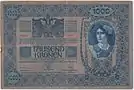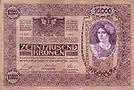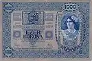 Austro-Hungarian krone paper money appeared in the beginning of the 20th century - almost ten years after the coins were introduced. All banknotes were bilingual (German and Hungarian), and the value was indicated in eight other languages (Czech, Polish, Croatian, Slovene, Serbian, Italian, Ruthenen (Ukrainian)[Notes 1] and Romanian). After the dissolution of the empire banknotes were overstamped to limit their circulation according to the new borders.[1]