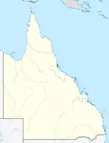 The range of Banksia plagiocarpa is limited to Hinchinbrook Island, where it is found on the top and slopes of Mount Bowen and Nina Peak, and the adjacent mainland on the Queensland north coast, where it is found on the summit and slopes of Bishops Peak.[10] The annual rainfall is 2,400 mm (94 in).[3] The habitat is either open woodland or grassland, and it can be the dominant shrub. The altitude it grows at on Hinchinbrook is between 200 and 720 m (660 and 2,360 ft), on gravelly, rocky or clay soils, and in association with such plants as tantoon (Leptospermum polygalifolium) and she-oaks (Casuarina), as well as Banksia aquilonia at lower altitudes below 400 m (1,300 ft). On the mainland, it is found in a more sandy soil, often near water.[10]