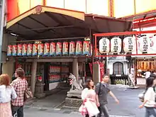 Directly located at the main street is the stone gate. Two kitsune (fox spirits) guard the entrance. Many paper lanterns give light.