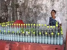 ![]() A lemonade seller with Banta soda bottles, Rishikesh, India. | |