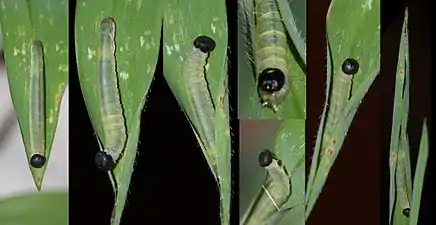 The larvae feed on Gramineae.[10]