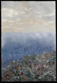 Growing up in Cape May, New Jersey brought me into everyday contact with the Atlantic Ocean, and much of my life has been spent finding my way from one coast to the other. The urge to be near salt water infused my work while living in Chicago for many years, and as I finally landed more than fifteen years ago in the Pacific Northwest on a small island in Puget Sound, my work evolved from non-representation images to evocations of the land, sea and sky.[15]