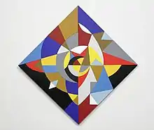 Schwartz was born in Philadelphia.[2] She studied at Carnegie Mellon University for her BFA.[1] She moved to New York and had her first solo show in 1975 at the Willard Gallery.[2] Towards the end of the 1970s, she aimed to develop abstract painting, including non-Western decorative elements, such as an Islamic influence, as well as integrating geometric with organic forms.[2] Her painted plaster reliefs were associated with the Pattern and Decoration movement in New York.[2] From 1978, she taught at the School of Visual Arts.[2] In 1979, she was represented in the Whitney Biennial.[2] She experimented with numerous materials, including wood, glass, and metal, and often cast pieces in bronze and aluminum. She used glazed ceramic for her work in the 1990s.[2] Her last representing gallery was the Andre Zarre Gallery in New York, where she had a show shortly before her death.