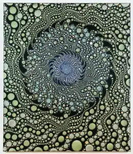 Barbara Takenaga (born 1949) is an American artist known for swirling, abstract paintings that have been described as psychedelic and cosmic, as well as scientific, due to their highly detailed, obsessive patterning.[1][2][3] She gained wide recognition in the 2000s, as critics such as David Cohen and Kenneth Baker placed her among a leading edge of artists renewing abstraction with paintings that emphasized visual beauty and excess, meticulous technique, and optical effects.[4][5][6][7] Her work suggests possibilities that range from imagined landscapes and aerial maps to astronomical and meteorological phenomena to microscopic views of cells, aquatic creatures or mineral cross-sections.[8][9][10] In a 2018 review, The New Yorker described Takenaga as "an abstractionist with a mystic’s interest in how the ecstatic can emerge from the laborious."[11]