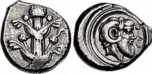Although it was often destroyed and then restored during the Roman period, becoming a mere borough, Barca was, nevertheless, the seat of a bishopric. The bishops who participated in the First Council of Nicaea in 325 included the Arian Zopyros of Barca.[8] Zenobius signed the acts of the Council of Ephesus in 431[9] and Theodorus took part in the Robber Council of Ephesus in 449,[10] whose decisions were overthrown by the Council of Chalcedon in 451.[11][12][13][14]