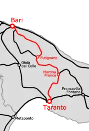 | Bari–Martina Franca–Taranto railway | ||||||||||||||||||||||||||||||||||||||||||||||||||||||||||||||||||||||||||||||||||||||||||||||||||||||||||||||||||||||||||||||||||||||||||||||||||||||||||||||||||||||||||||||||||||||||||||||||||||||||||||||||||||||||