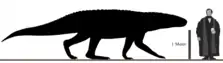The preserved parts of the holotype consist of a skull that is 70 centimeters in length and 40 centimeters in height. Based on this, it is estimated that the total skull length was between 95 and 115 centimeters.[3] The total length of the animal is estimated to be close to 6 meters based on more complete sebecosuchians like Stratiosuchus,[3] making Barinasuchus the largest known sebecid. Without more complete remains, it is difficult to estimate its possible weight; however, based in the lengths of Stratiosuchus mexhechti and Crocodylus porosus, it has been estimated that Barinasuchus weighed around 1,610 and 1,720 kilograms respectively. This implies a superior weight than any of the large carnivoran mammals, and even considering a margin error of 50%, would still make it larger than any terrestrial mammalian predator of the Cenozoic.[3]