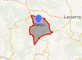 Barjac is located in the old Volvestre region of Languedoc some 10 km north of Saint-Girons and 60 km south by south-west of Toulouse. Access to the commune is by route D303A which branches off the D3 west of the commune and passes through the commune east then south to join the D303 to La Crouzette south-east of the commune. It is a part of the Natural Regional Park of Pyrénées ariégeoises. The commune is mixed forest and farmland.[4][5]