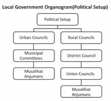 The Balochistan Local Government Ordinance (BLGO) of 1980 was intended to involve local populations in the development of their areas; it was replaced by BLGO 2001, which introduced the concept of district government. Under BLGO 2001, Barkhan District had one tehsil and eight union councils. The district was administered by a single line of administration that covered both the rural as well as the urban areas. The system continued for two tenures and was again modified through the approval of BLGA 2010. The present system, under the Local Government Act 2010, is similar to BLGO 1980 in that it emphasizes a rural-urban division, but no elections were held under the latest system.
