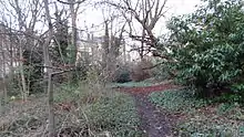 In the nineteenth century the site was the garden of the vicarage of St Andrew's Church in Huntingdon Street. In the early twentieth century the garden was abandoned and became woodland. Islington Council purchased it in 1974, proposing to develop it, but in the 1990s it was decided to leave it as woodland and it was declared a Local Nature Reserve. Trees include sycamore, ash, lime and horse chestnut.[4] Birds include the long tailed tit, and there are invertebrates such as the lesser stag beetle and the sixteen spot ladybird.[5]